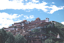 The town of Kartse has a splendid monastery at the north end of the town. The 7th Naktsang Rinpoche, one of the highest lamas from Kartse, happened to stay there for teaching ceremonies. Many followers gathered there to receive the lama's teaching and blessing. |