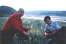during daytime. But sunset was soon now. After all, we reached Pasang's village. More than three hours had passed. The monastery is at the top of a hill. We spent half an hour more to climb up. I was invited to the VIP room for the head lama of the monastery. But I could not see anything gorgeous in the room because of blackout. Anyway I spent a comfortable night there with butter tea and noodles there. |