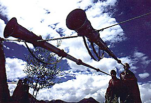 Young monks were practicing to blow Dungchen, Tibetan horns, on the Bama-ri Hill close to Kundeling monastery. Try to blow it if you are confident in your lung. Don't forget Lhasa has only 60% of oxygen of the lower land!