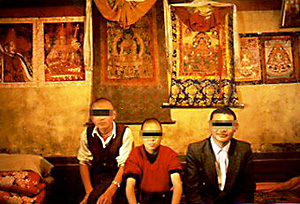 Young monks in their own room of a monastery in Lhasa. According to one of them, the thangka paintings hung on the wall are "1000 years old". It is better to discount this figure, but I'm sure to believe his story, "we buried them under the ground to protect them from the Red Guards". In 1996 I visited the same room, but they had already moved to somewhere.