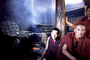 The kitchen of Jampaling. The big monastery needs big pots naturally. When I visited there, a special ceremony happened to be held. Rice was delivered to all the monks.